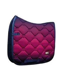 Exclusive saddle pad designed in a bold fuchsia pink and navy gradient. Specifically designed to fit your horse with anatomical shape. Crafted in a glossy, dirt resistant material that breathes well and keeps your horse dry throughout sweaty session. Quilted in the stylish Equestrian Stockholm pattern. Style with other pieces from the same collection for a complete look.Â