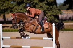 Luxurious, crocheted ear net in a warm orange design. Decorated with a golden patch at the front, golden piping and a matching ES badge. The net helps with both insect protection and noise reduction. The ear net has elastic cloth by the ears for minimal gall. Matches perfectly with the saddle pad from the same collection.