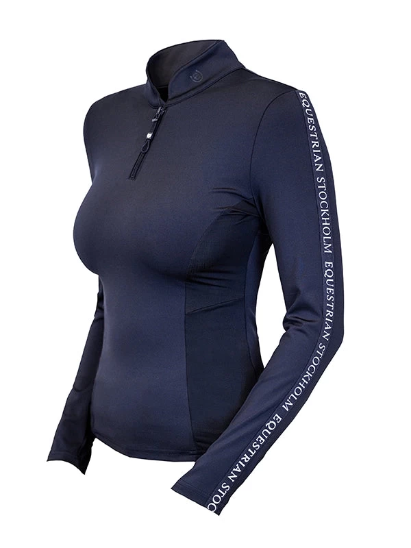 Equestrian Stockholm Power Top Modern Tech Navy – the ultimate blend of style and sustainability. Our favourite power top is back and better than ever with a new sporty look that will turn heads, but it’s not just about looks – we’ve incorporated recycled materials into the design, so you can feel good about your purchase.