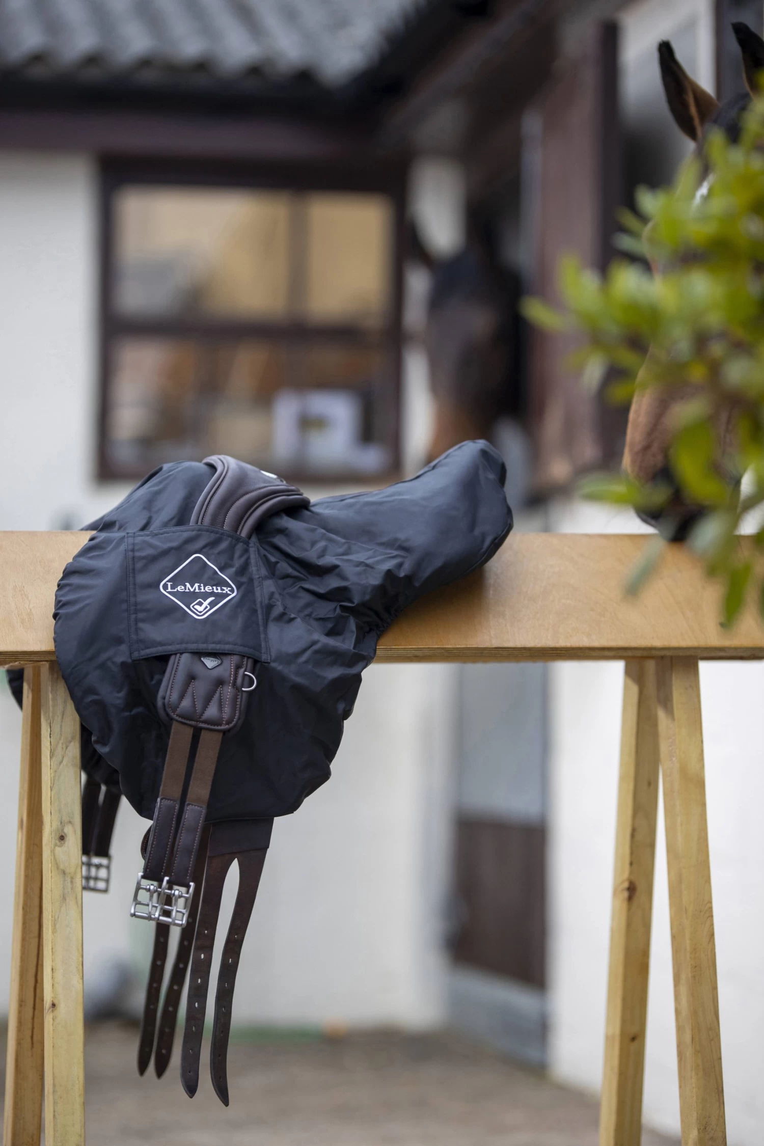LeMieux ProKit saddle cover is made of a durable, waterproof polyester outer with a soft fleece lining to protect the saddle. Waterproof rating of 3000mm.
