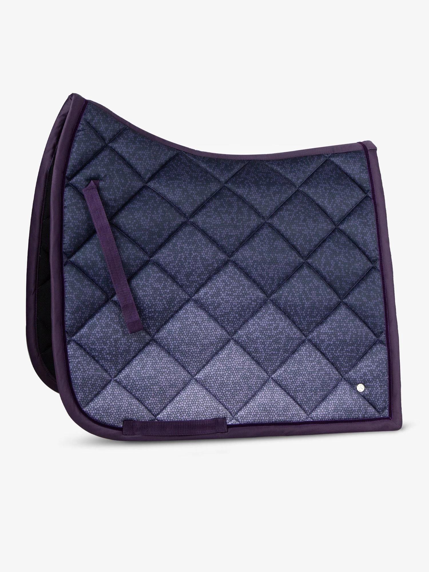 Anatomical saddle pad with an elegant velvet piping. The saddle pad has a Ombre colored shade that makes it shift from dark to light. Buckles with pre-sewn loops to prevent the saddle pad from sliding. The inside is covered with an antibacterial quick-dry material that transports moisture and sweat.